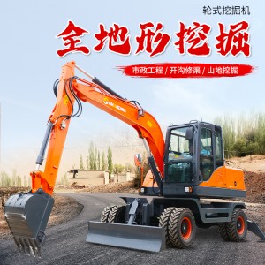 • 80輪式挖掘機 適應全地形 農用開荒工程破碎鉤機 山鼎機械